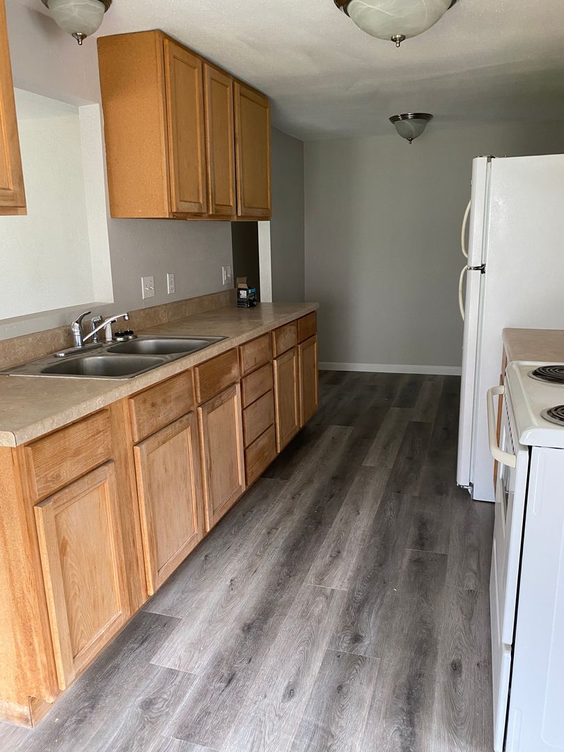 Look at this cute house newly remodeled. Nice fenced in yard!! New roof on house and detached garage. Ready now for move in!