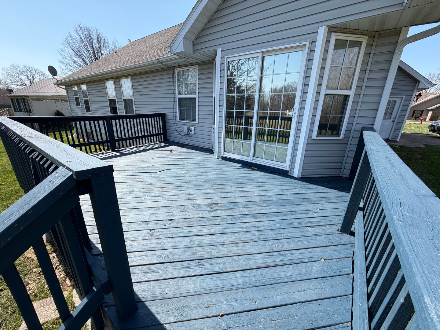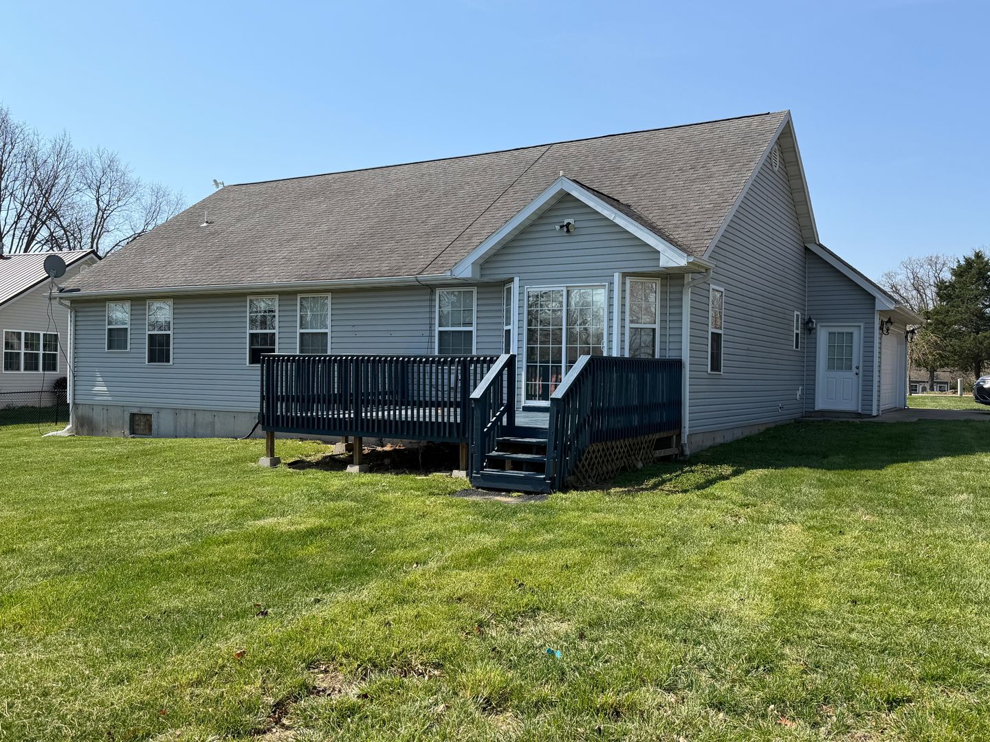 This 4 bedroom 2 bathroom is located in the quiet town of Waynesville, just minutes from Fort Leonard Wood. Enjoy the amenities of this corner lot with a covered front porch, and deck out back. Walk into the living room with carpeted flooring, vaulted ceilings, and lots of natural light and electric fireplace. The kitchen/dining area offers plenty of room for a small breakfast table, with formal dinning space on the other side of the kitchen, with durable ceramic tile flooring. The master bedroom is spacious and the master bath offers his and hers sinks, and a jetted bathtub. The guest bedrooms are carpeted for comfort with plenty of space for friends and family to visit. Additional features include a 480 sq ft (approx) garage that has alot storage space with built in cabinets.