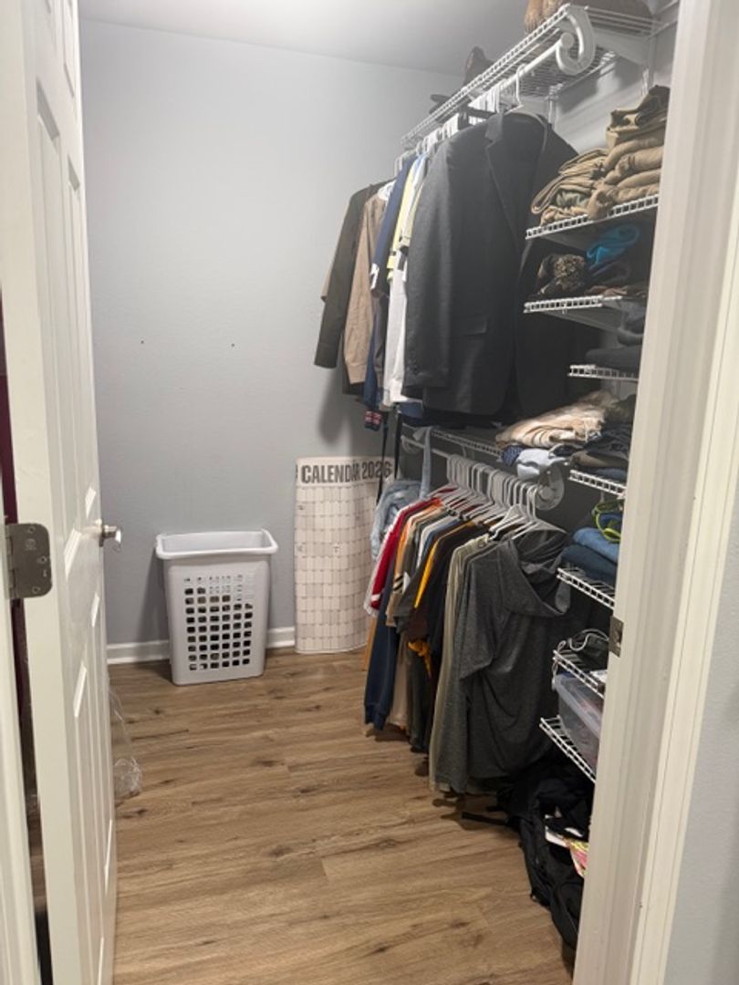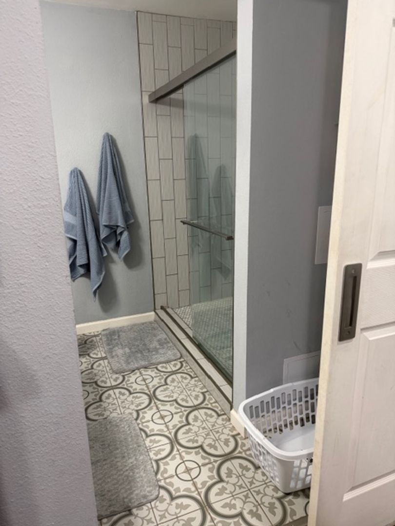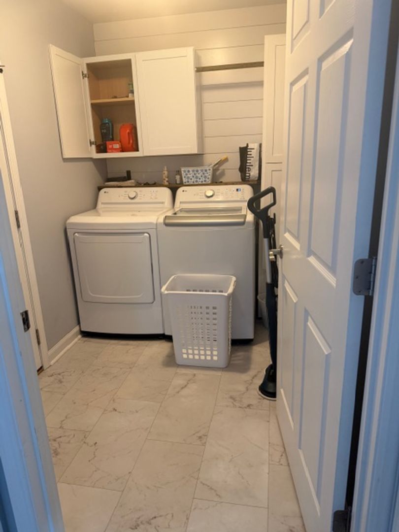 Laundry room with a new shiplap feature wall. Primary bedroom with dimmable lights, walk-in closet, and an en-suite bathroom with tile shower and modern vanity. Vinyl plank and vinyl tile flooring throughout for easy maintenance!