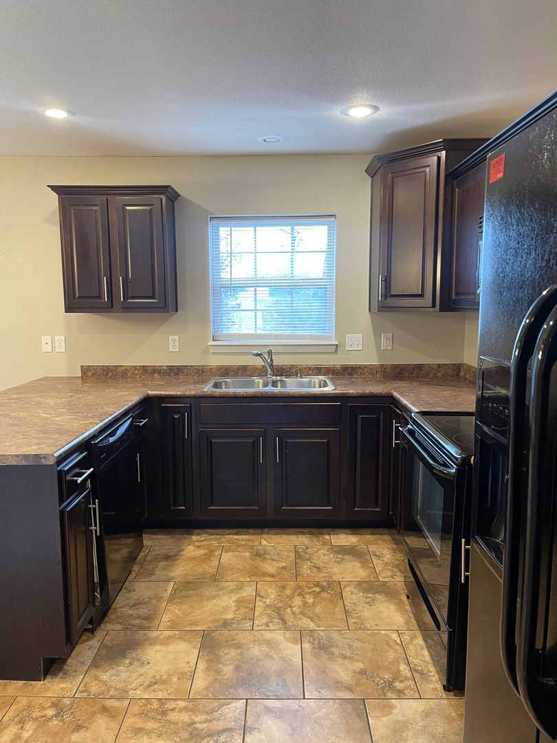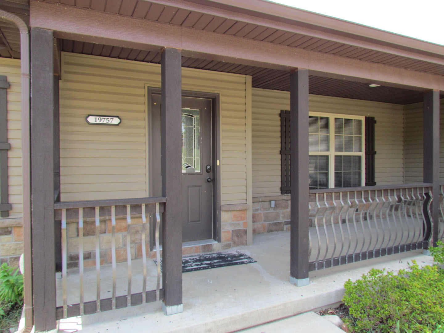 This 3 bedroom 2 bathroom is located in the quiet town of Waynesville, just minutes from Fort Leonard Wood. Enjoy the amenities of this corner lot with a covered front porch, privacy fence, and deck out back. Walk into the living room with laminate flooring, vaulted ceilings, and lots of natural light. The kitchen/dining area offers plenty of room for a dining table and a built in breakfast bar! The black appliances and wine colored walls compliment each other greatly in this area. The master bedroom is spacious and the master bath offers his and hers sinks, and a beautiful shower with sliding glass door. The guest bedrooms are carpeted for comfort with plenty of space for friends and family to visit. You will also find a large unfinished basement, perfect for extra storage!